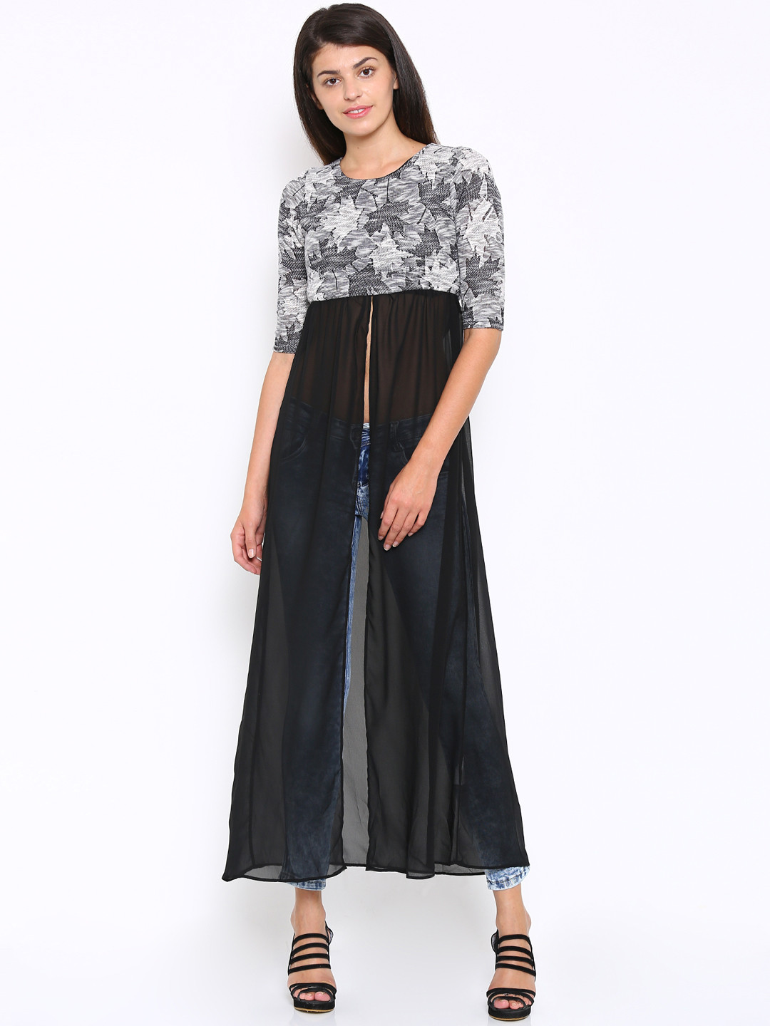 Buy Deal Jeans Women Black \u0026 White Self maxi top on jeans