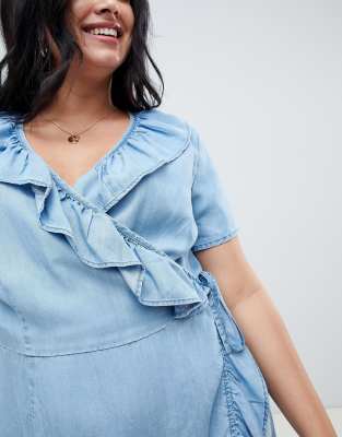 ASOS DESIGN Curve denim wrap dress with denim frill wrap dress