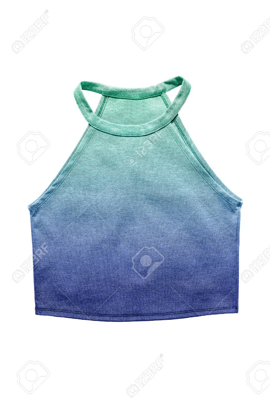 Blue Ombre Halter Crop Top On White blue and white halter top