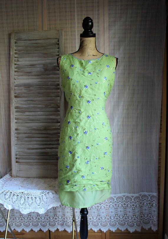 Vintage green blue floral embroidery coldwater creek summer dresses