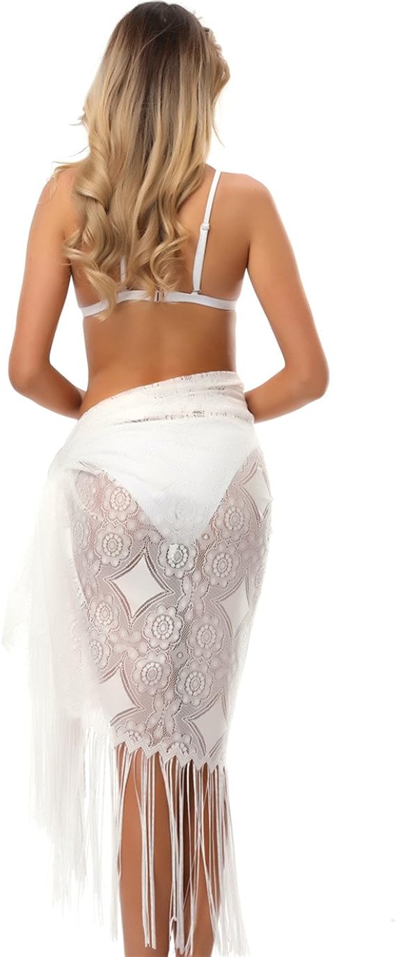 Bcharm Sarong Wrap Beach Coverups white lace sarong