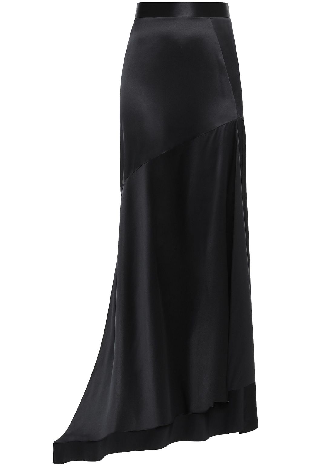 Black Imperial asymmetric silk-satin black silk maxi skirt