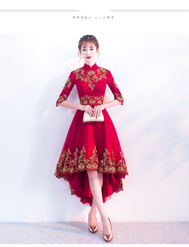 Red Wedding Lace Traditional Dresses  chinese style formal dresses