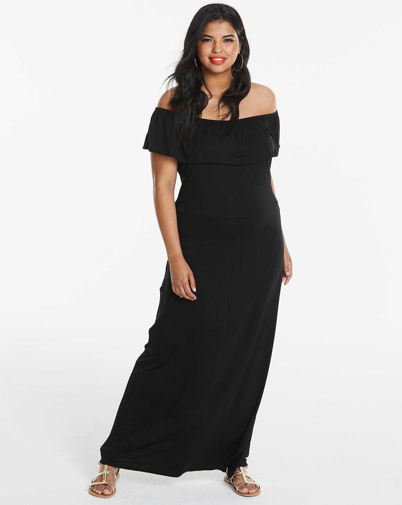 Little Mistress Black Bardot Maxi Dress black bardot long dress