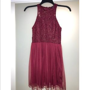 Two Pieces Tulle Sequin Sparkly Pretty dark red and gold dress