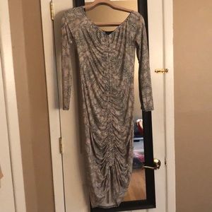 shape taupe snake print slinky ruched bardot midi dress