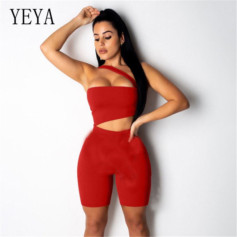 2020 YEYA Sexy Cut Out Sleeveless Black red jumpsuit bodycon