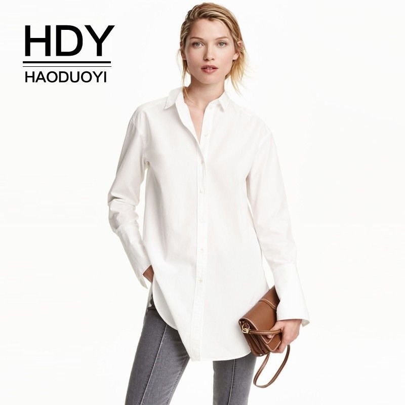 2020 HDY Haoduoyi Femme Simple Buckle white baggy shirt