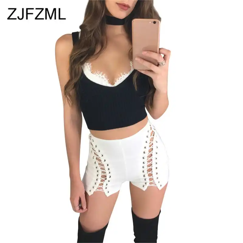 Sexy Club Hollow Out Cross Lace Up white lace up shorts