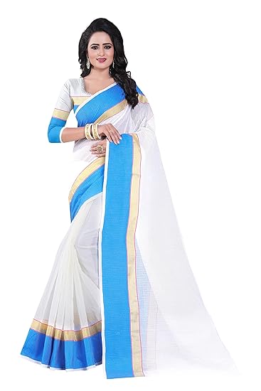 Art Silk Saree With Un-stitched Blouse amazon white colour sarees