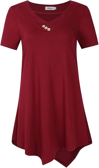 MISSKY Women V Neck Short Sleeve Loose red t shirt dress amazon