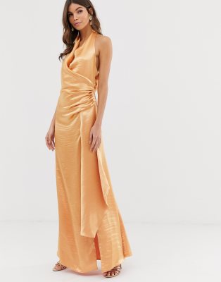 halter maxi dress in high shine satin asos design halter maxi dress with split detail