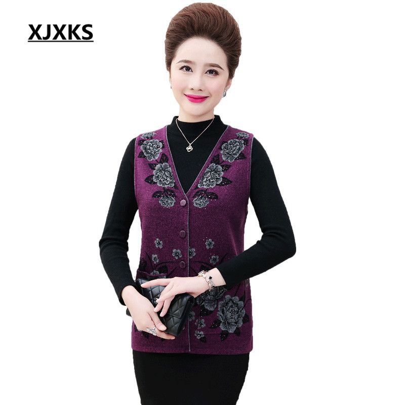 2020 XJXKS Single Breasted Women V Neck plus size sweater vest