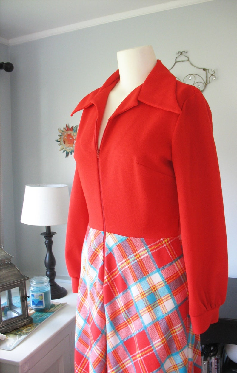 Plaid Maxi Dress Red Double Knit and red plaid maxi dress