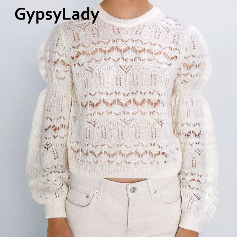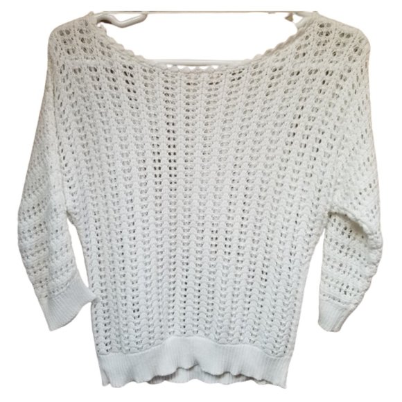 Sleeves Pullovers Sweaters Casual Chic white open knit sweater