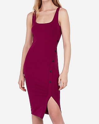Sleeveless Open Back Plain Knit Buttons button bodycon midi dress