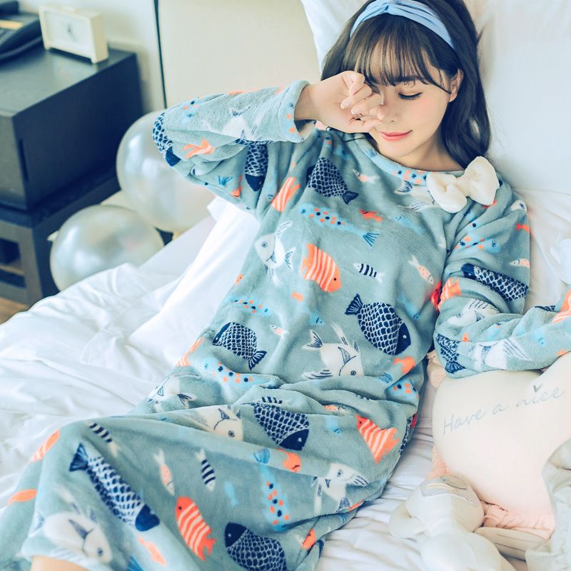 Warm Flannel NIghtgown For Women Dress winter night clothes