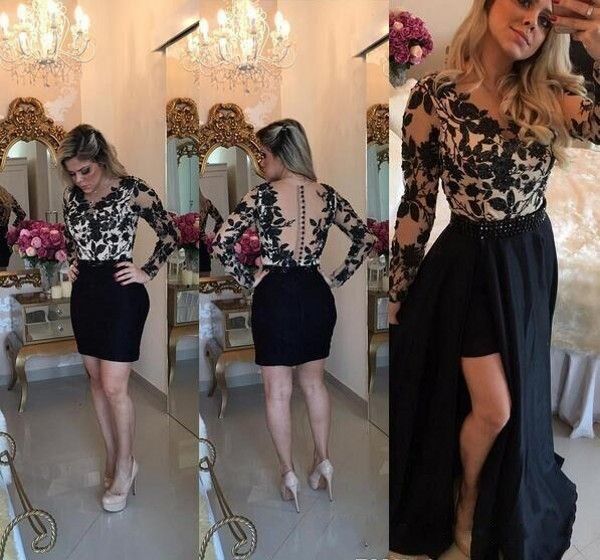 2018 Black Prom Dresses With Detachable black sexy cocktail dresses