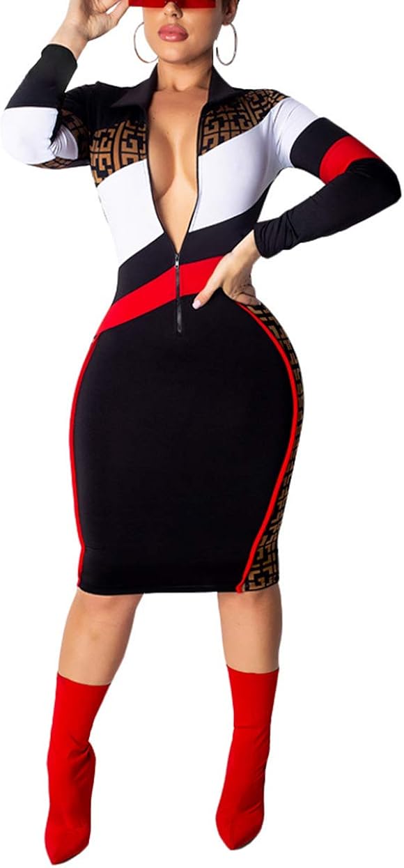 Bluewolfsea Womens Sexy Long Sleeve zipper front bodycon mini dress