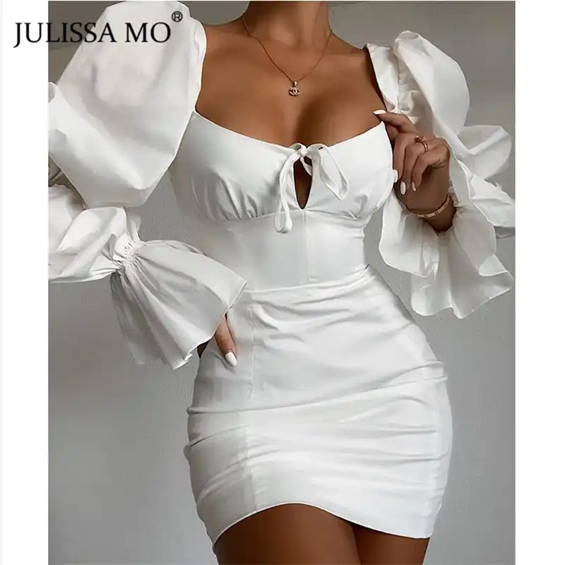 JULISSA MO Elegant Puff Sleeve Bodycon white puff sleeve bodycon dress