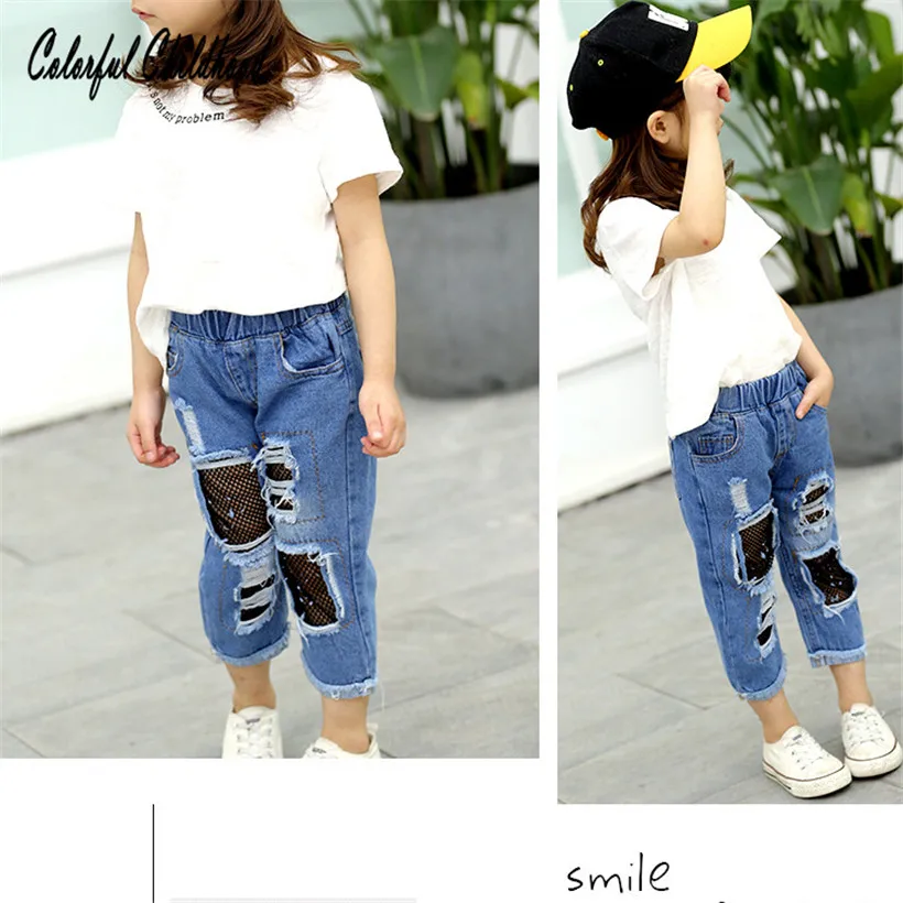 Straight Jeans Ladies Casual Loose Fish net jeans for girls