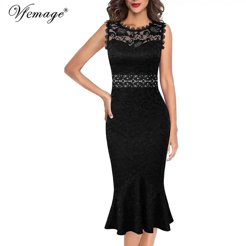 Vfemage Womens Floral Embroidery eyelash lace midi dress