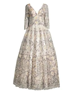 Basix Black Label Embroidered V-neck basix embroidered ball gown