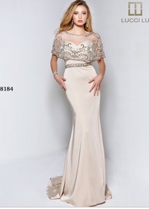 Champagne Mermaid Backless Lace  champagne color evening gown