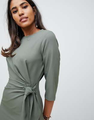 asos design wrap detail midi dress with long sleeves