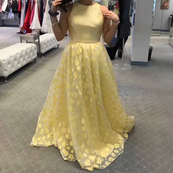 yellow prom dress with flowers