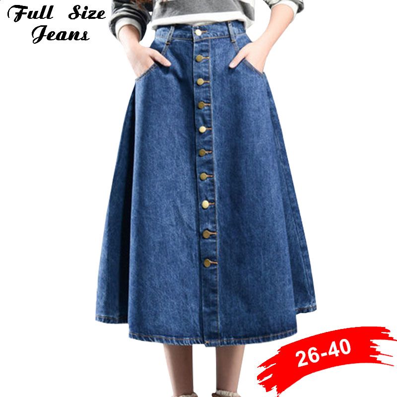 7Xl Button Down Pleated Jeans Skirts knee length button down denim skirt
