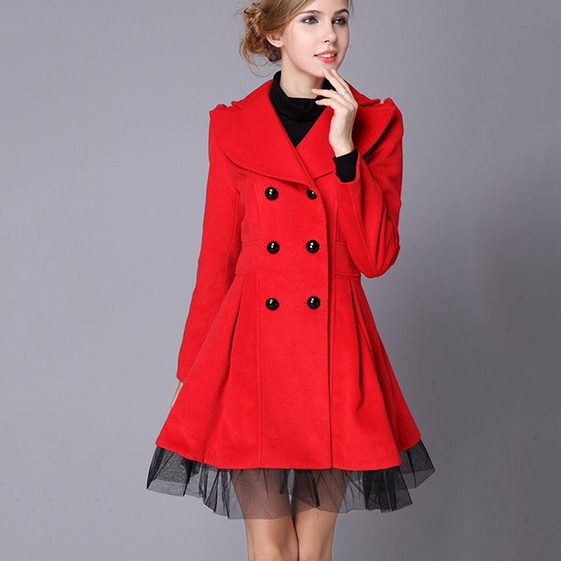 women blue white Plaid Wool Coat casual white wool women's dress coat