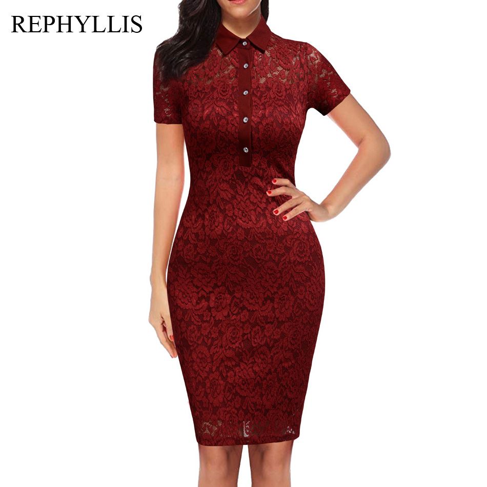 REPHYLLIS Women Lace Turn Down Collar semi formal dresses for work party
